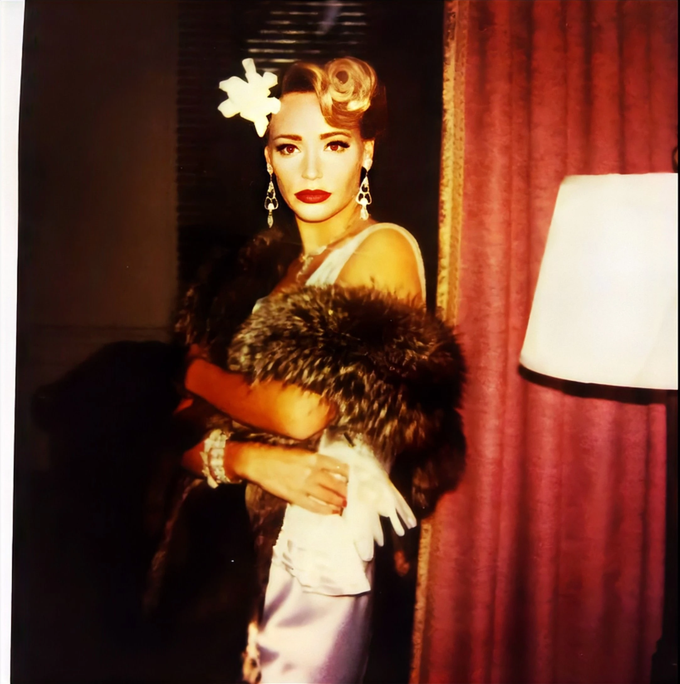 A scene from the film started with classy "Dame" Carlotta wearing a 1930s satin evening gown and fur stole walking into gangster Johnny's apartment. Gritty old Chicago gangster Johnny was waiting for her, sitting next to a Christmas tree, wearing a tuxedo with greased back hair, while smoking a cigarette and watching a movie by the fireplace. Johnny accused Carlotta of cheating with his brother. She denied it, but he accused her of kissing many other men - Snuffy, Al, Leo, "Little Moe with the gimpy leg", Cheeks, Bony Bob, and Cliff. She denied everything, and he told her that he believed her, but he proceeded to grab a Tommy Gun from under the Christmas tree proclaiming the gun did not believe her. He made Carlotta beg for her life on her knees. She told him she was over the moon for him, and when that didn't impress him, she exclaimed that if her love was an ocean "Lindy" would need two airplanes to cross it, and he seemed convinced. He told her menacingly that she had three seconds to escape. Carlotta stood up but out of sheer fear, she could not run away. At the count of two, he started firing his Tommy Gun, riddling Carlotta with bullets. After a lengthy salvo, he stopped shooting, wishing her a Merry Christmas. He then fired at her again, wishing her a Happy New Year.[1]